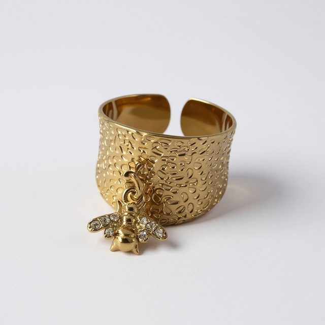 Ajoutez une touche d’élégance moderne à votre look avec cette bagues en acier inoxydable, conçues pour durer et résister aux effets du temps. Cette bague présente un design unique et est ornée d’une breloque abeille, offrant une touche de charme supplémentaire à cette pièce déjà sophistiquée.