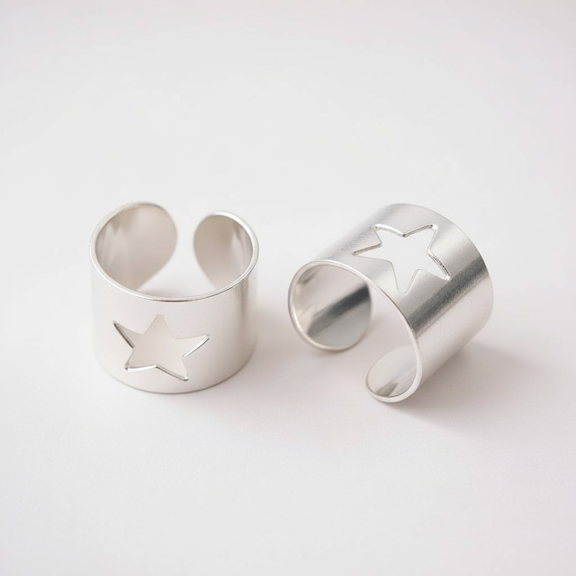 Cette bague en plaqué argent se distingue par son design épuré et contemporain. Sa large bande lisse met en valeur une élégante découpe en forme d’étoile, créant un effet à la fois moderne et délicat. Grâce à son mécanisme ajustable, elle s’adapte facilement à toutes les tailles de doigts, offrant une flexibilité optimale pour un confort tout au long de la journée.
